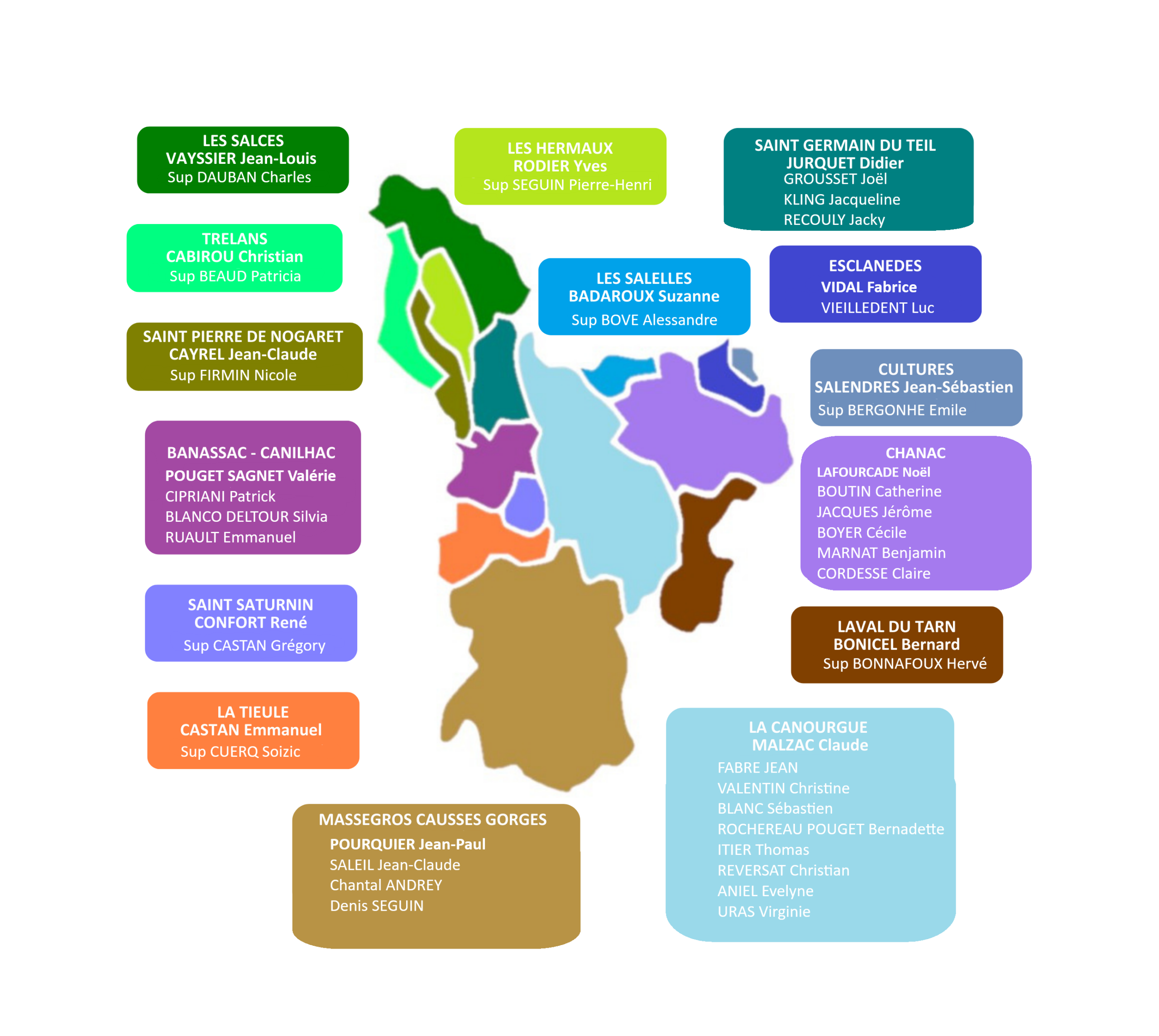 Les élus délégués à la Communauté de communes Aubrac Lot Causses Tarn }